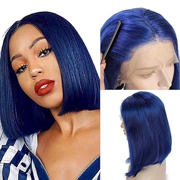 Dark Blue Short Bob Lace Wigs With Baby Hairs Virgin Peruvian Blue Full Lace Human Hair Wigs Glueless Lace Front Wigs 130 Density Full Lace Virgin