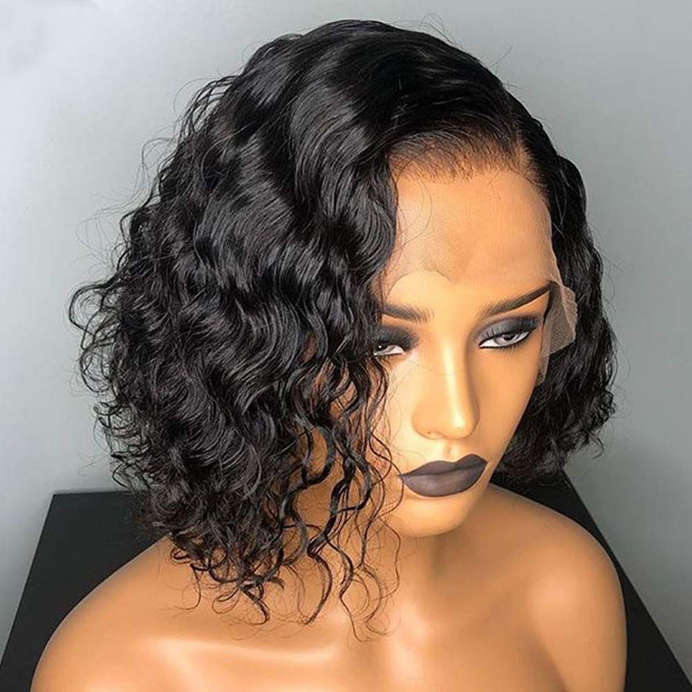 Short Curly Lace Front Wigs Bob Hairstyles Side Part Deep Wave Brazilian Human Hair Lace Front Wig With Baby Hair For Women 150 Density
